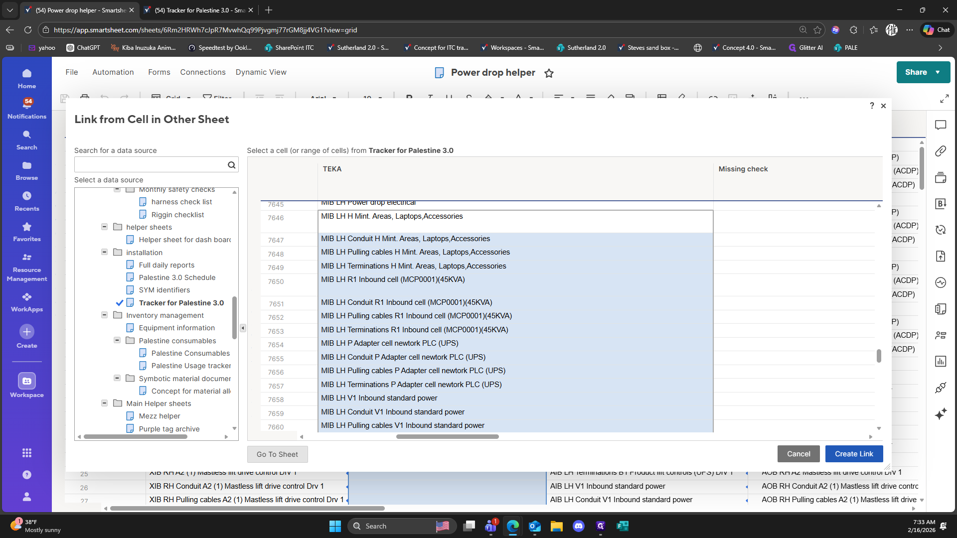 Click on "Link from Cell in Other Sheet"